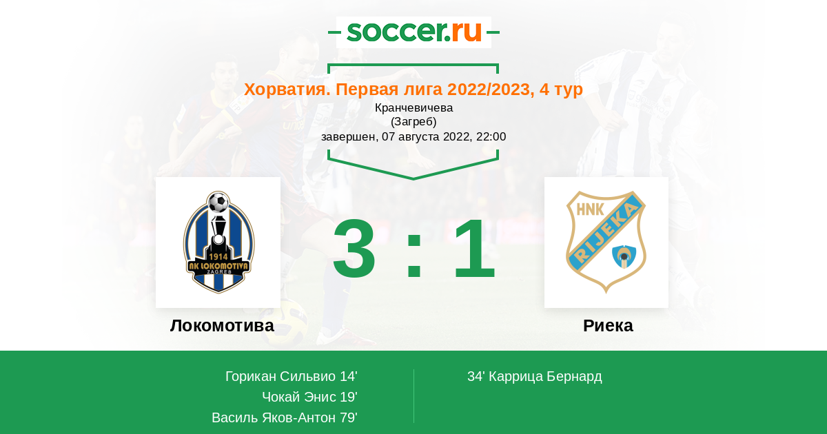 Протокол матча Локомотива против Риека