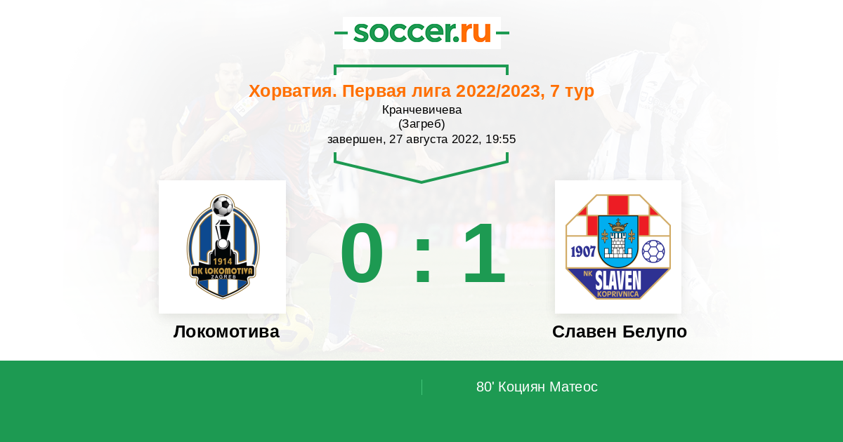 80' (0:1) Коциян Матеос (17) (Жулевич Марко (8))
