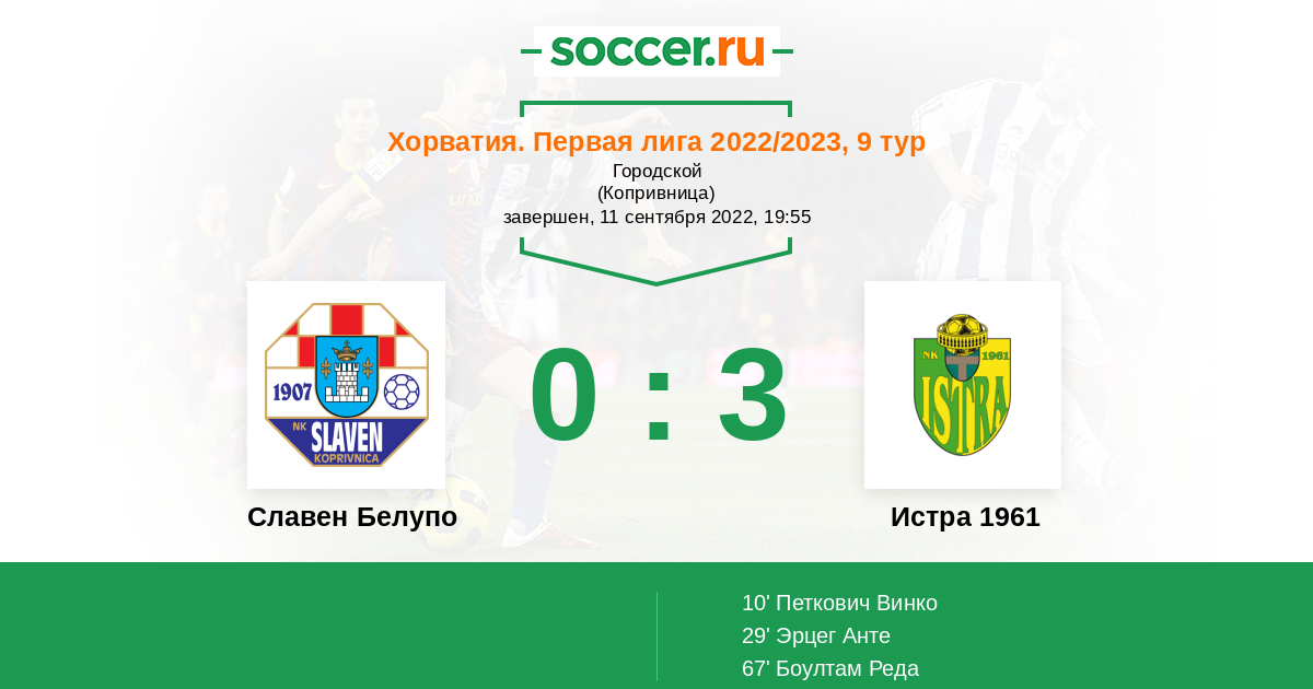 67' (0:3) Боултам Реда (10) (Эрцег Анте (50))