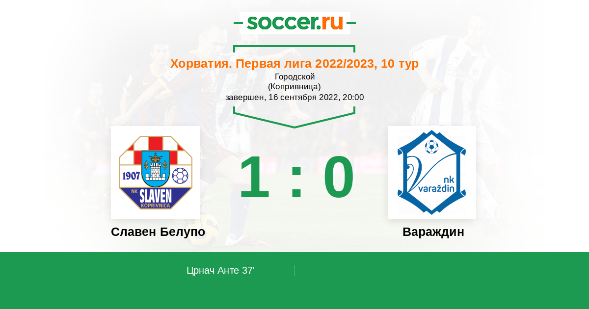 Протокол матча Славен Белупо против Вараждин