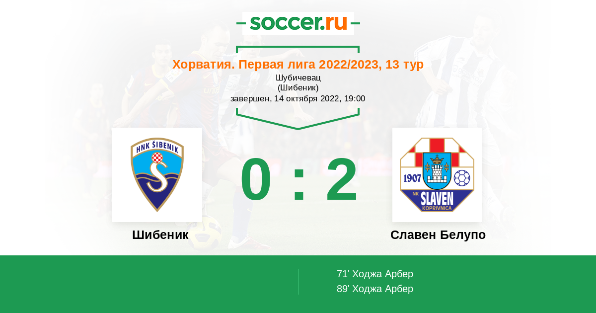 Протокол матча Шибеник против Славен Белупо
