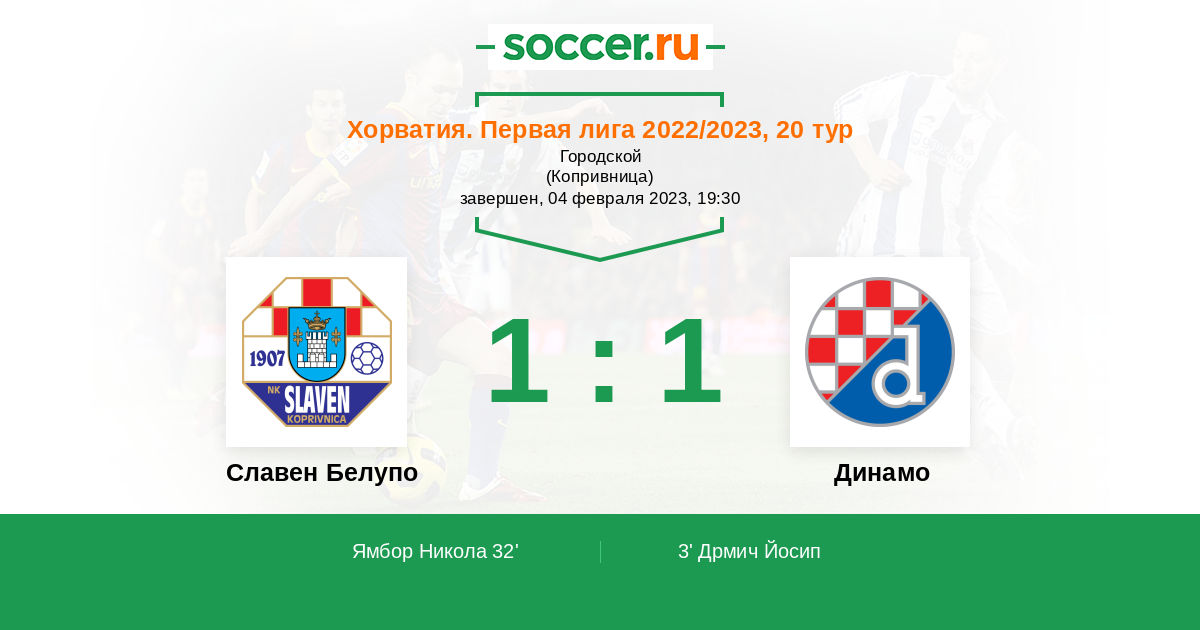 Протокол матча Славен Белупо против Динамо