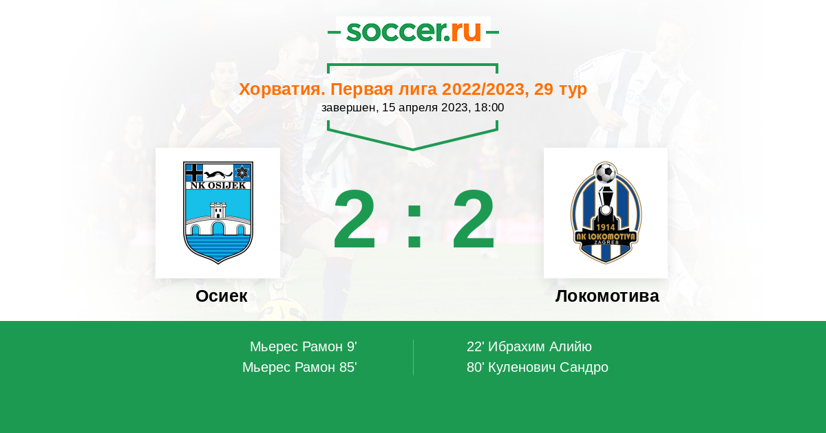 Протокол матча Осиек против Локомотива