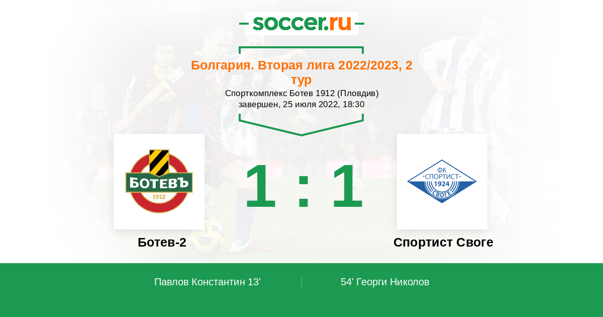 Протокол матча Ботев-2 против Спортист Своге