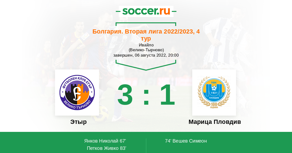 Протокол матча Этыр против Марица Пловдив