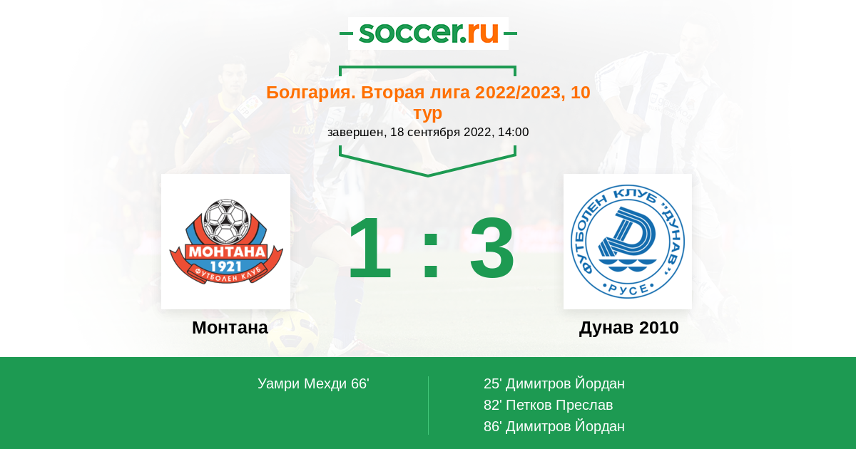 Протокол матча Монтана против Дунав 2010