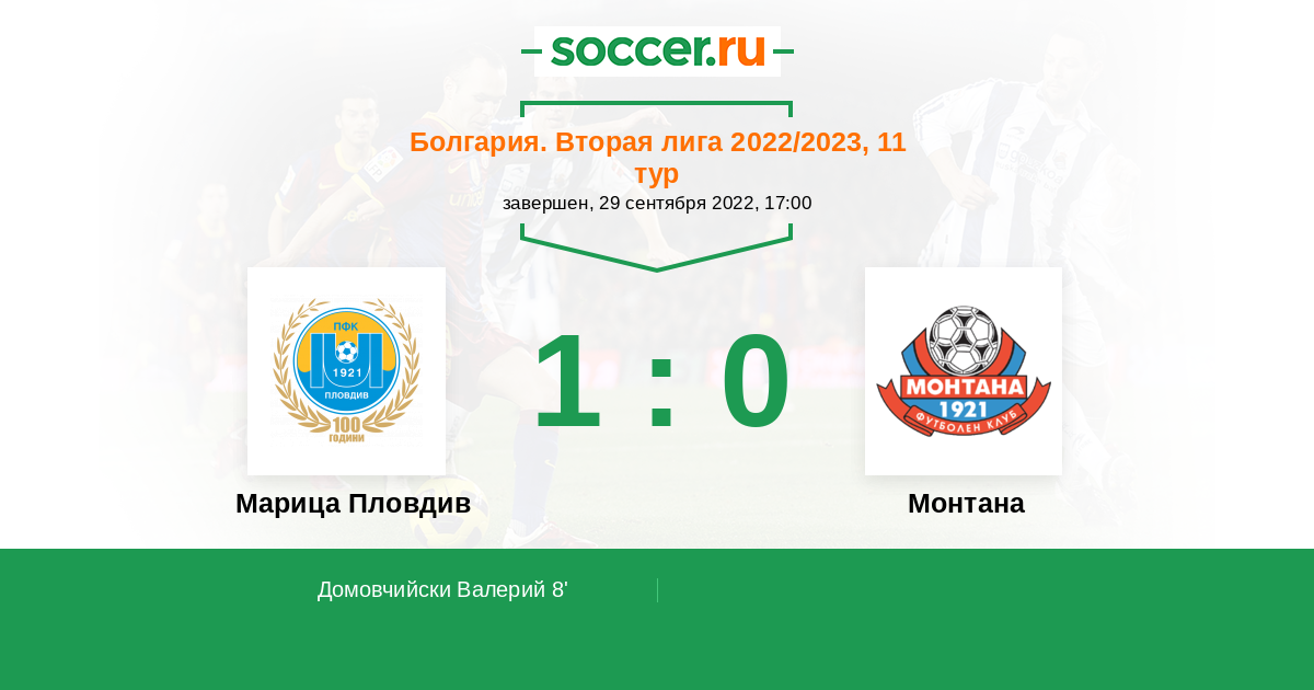 Протокол матча Марица Пловдив против Монтана