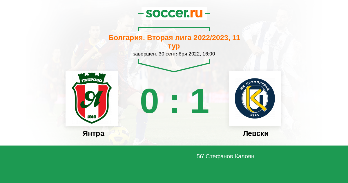 Протокол матча Янтра против Левски