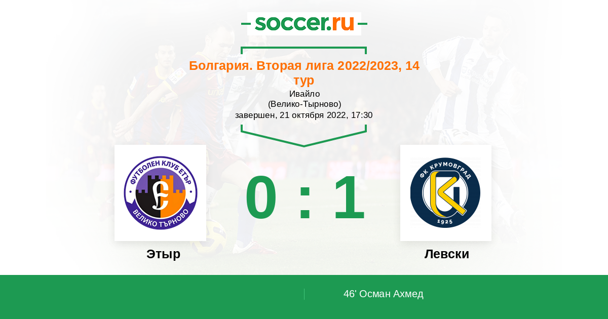 Протокол матча Этыр против Левски