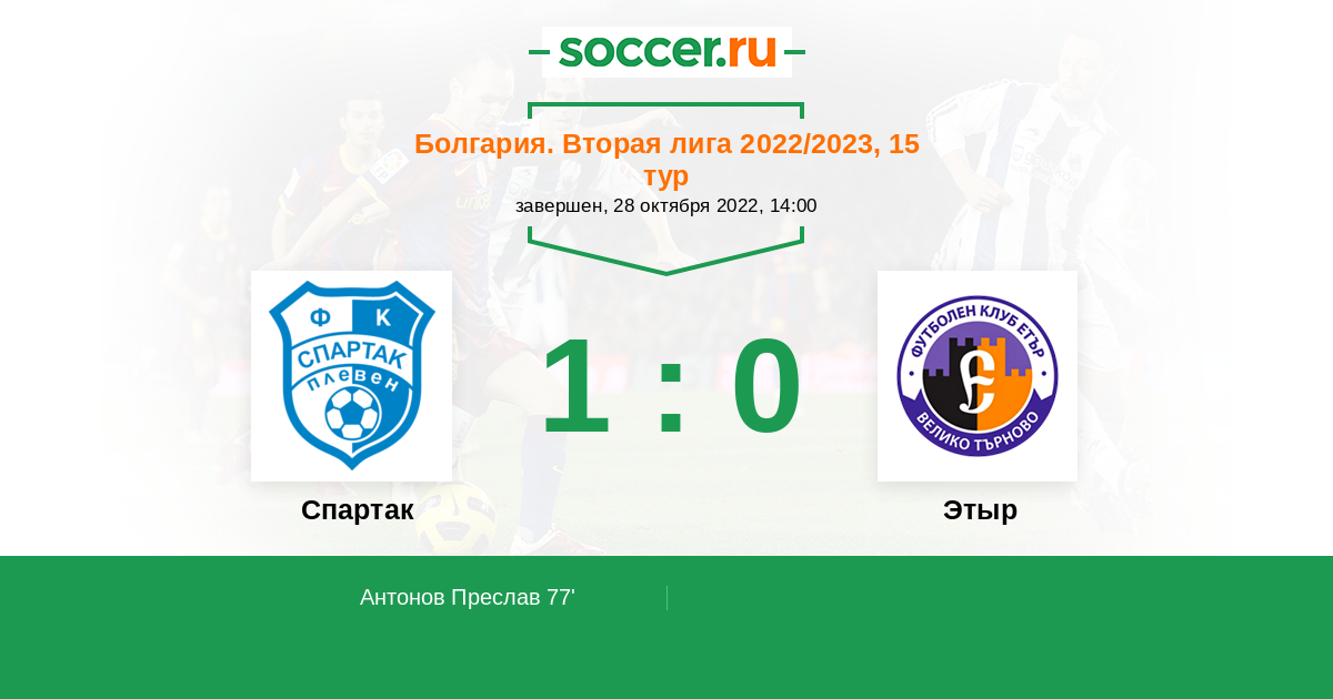 Протокол матча Спартак против Этыр