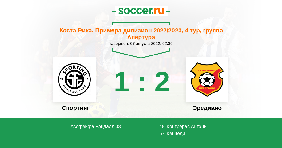 Протокол матча Спортинг Сан-Хосе против Эредиано