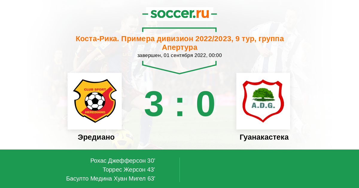 Протокол матча Эредиано против Гуанакастека