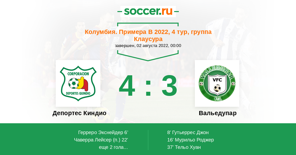 Протокол матча Депортес Киндио против Вальедупар