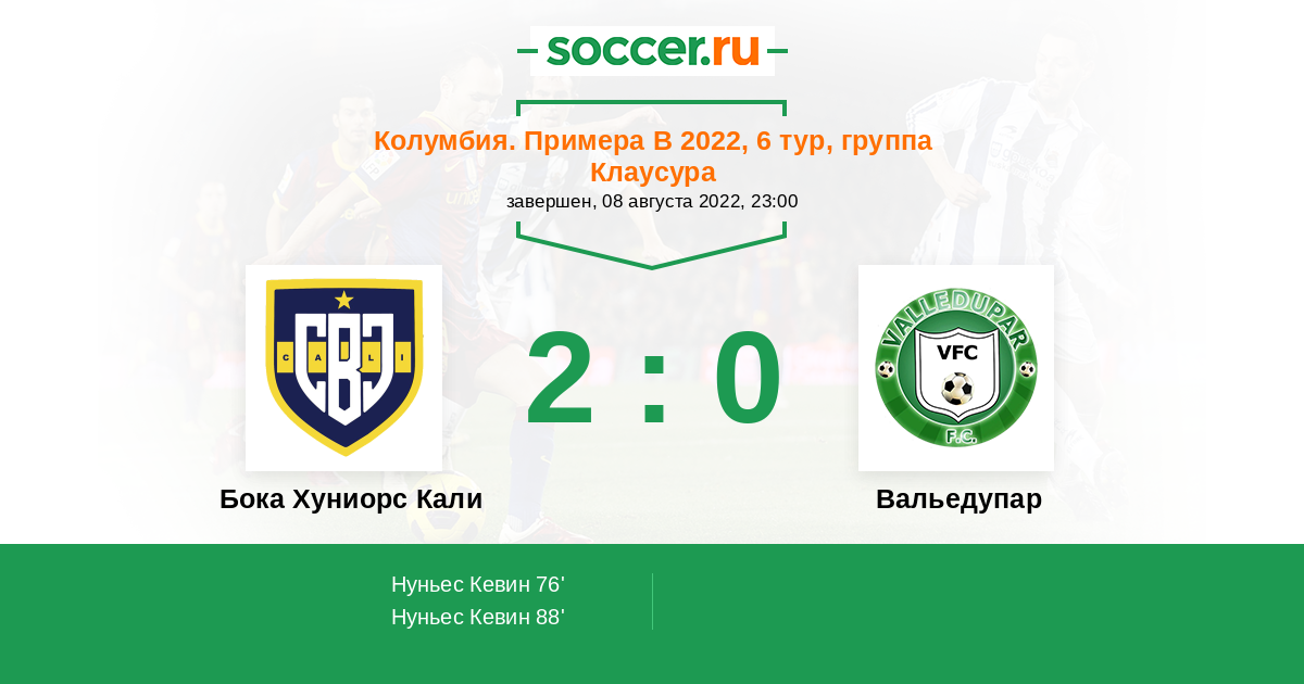 Протокол матча Бока Хуниорс Кали против Вальедупар