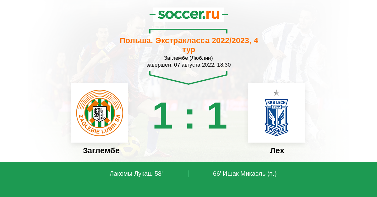 Протокол матча Заглембе против Лех