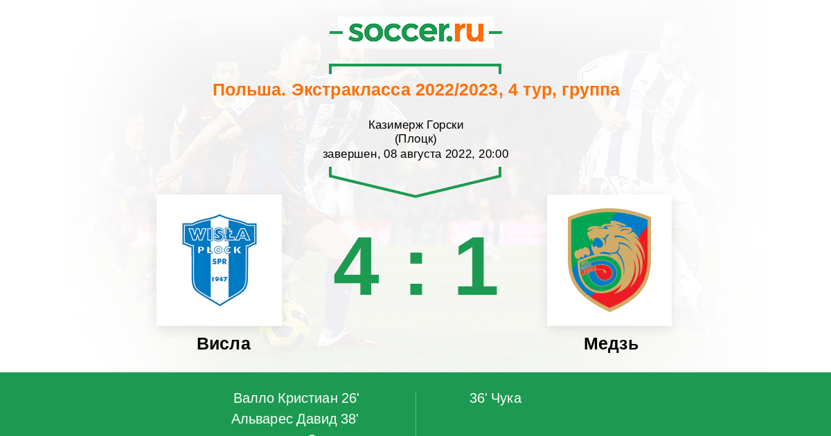 Протокол матча Висла против Медзь