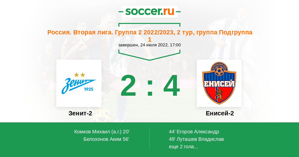 Протокол матча Зенит-2 против Енисей-2