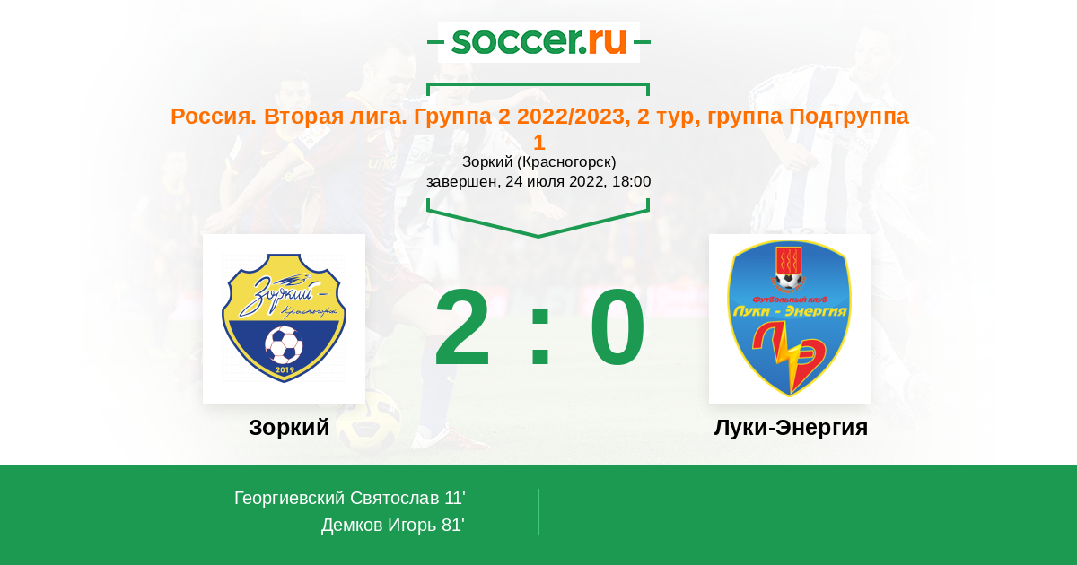 Протокол матча Зоркий против Луки-Энергия