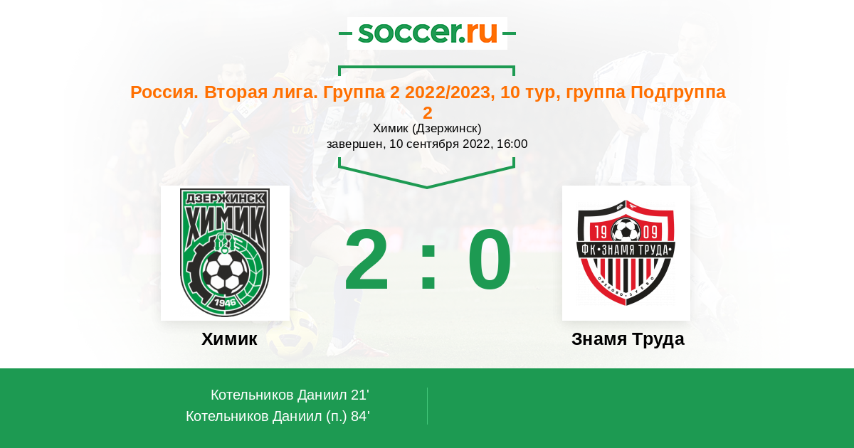 Протокол матча Химик против Знамя Труда