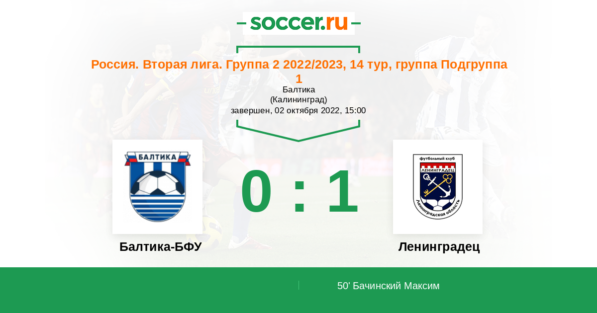 Протокол матча Балтика-БФУ против Ленинградец