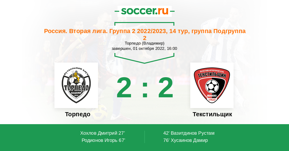 Протокол матча Торпедо против Текстильщик