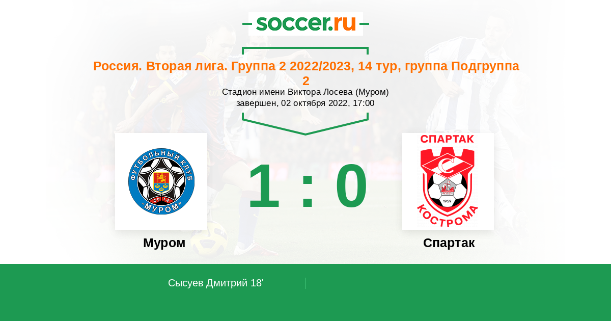 Протокол матча Муром против Спартак Кострома