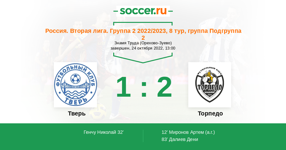 Протокол матча Тверь против Торпедо