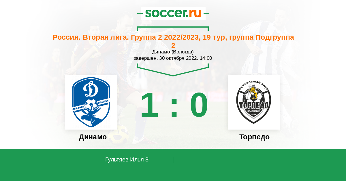 Протокол матча Динамо Вологда против Торпедо