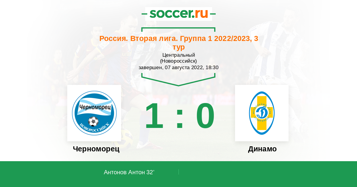 Протокол матча Черноморец против Динамо Ставрополь