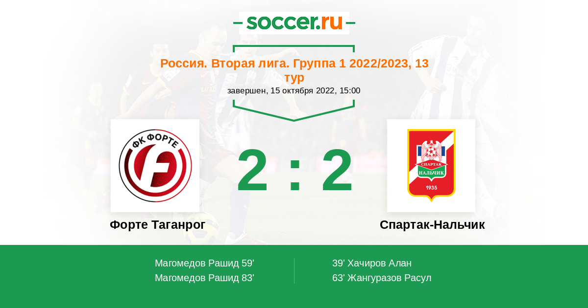 Протокол матча Форте Таганрог против Спартак-Нальчик