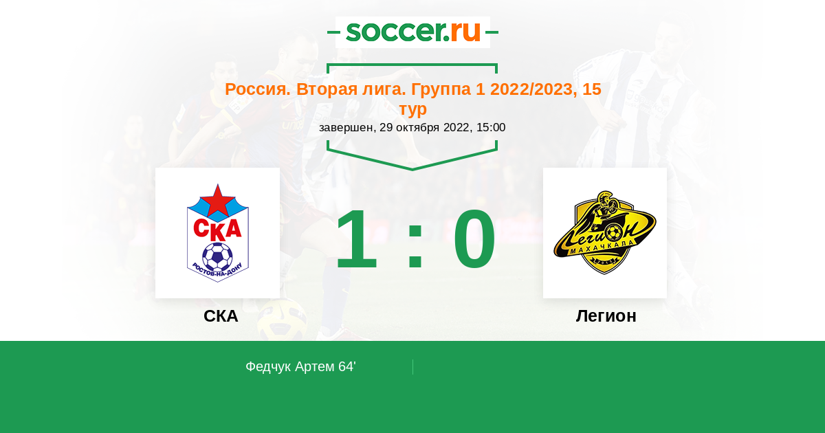 Протокол матча СКА против Легион