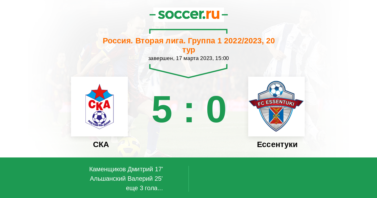Протокол матча СКА против Ессентуки