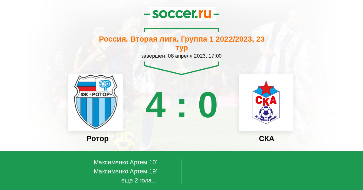 Протокол матча Ротор против СКА