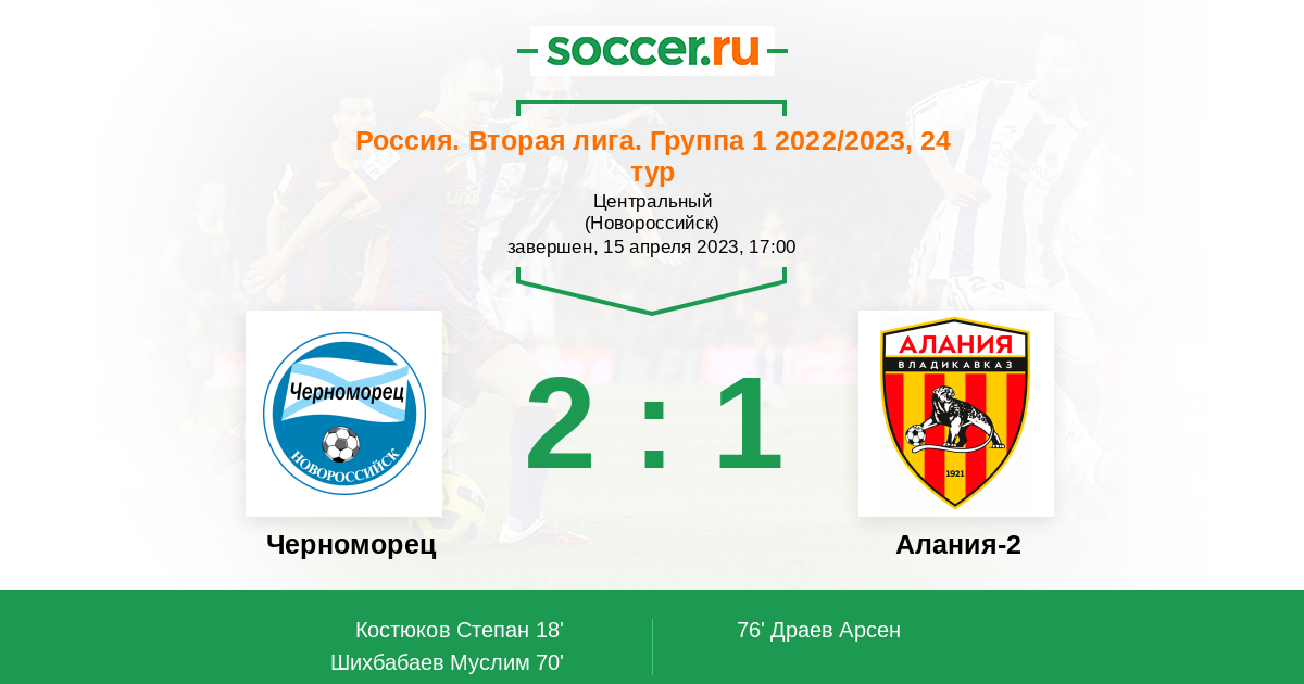 Протокол матча Черноморец против Алания-2