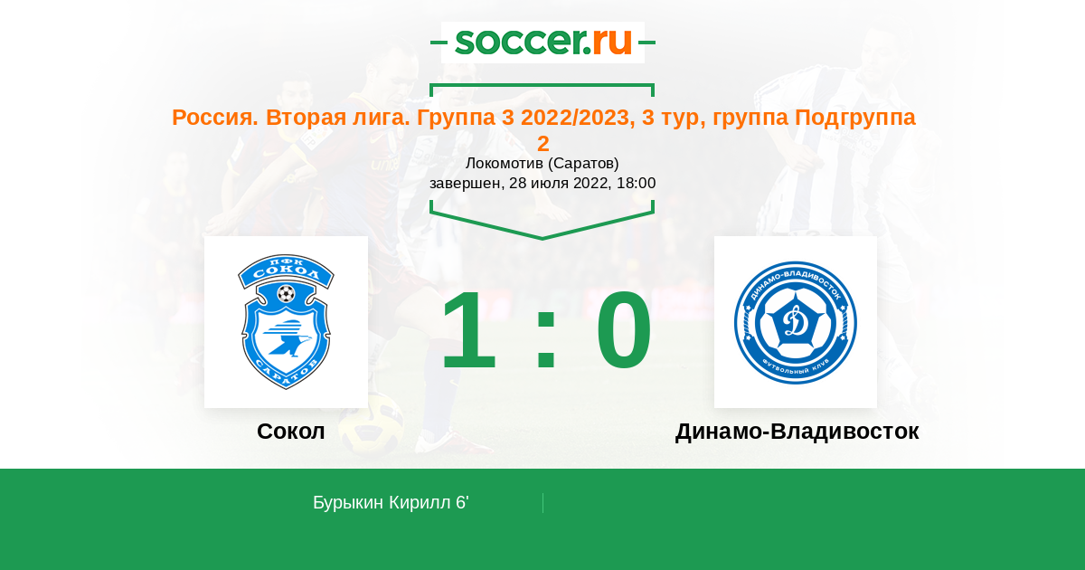 Протокол матча Сокол против Динамо Владивосток