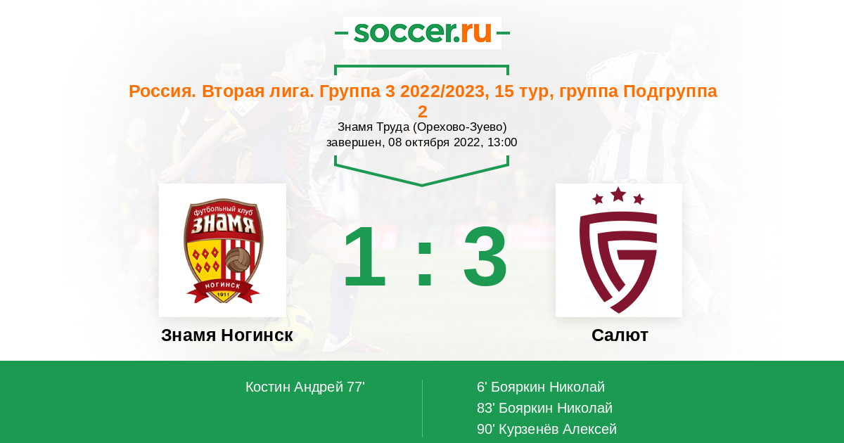 Протокол матча Знамя Ногинск против Салют