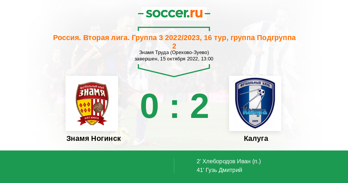 Протокол матча Знамя Ногинск против Калуга