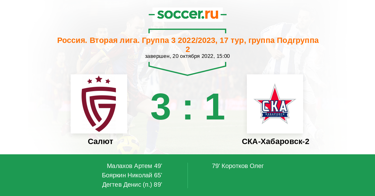 Протокол матча Салют против СКА-Хабаровск-2