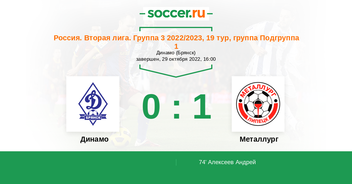 Протокол матча Динамо Брянск против Металлург