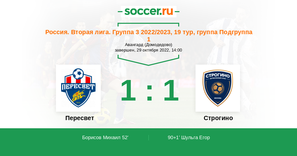 Протокол матча Пересвет против Строгино