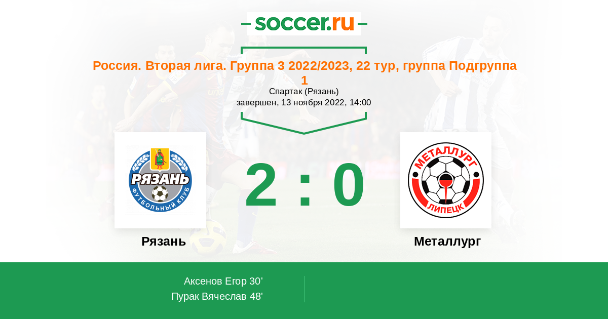 Протокол матча Рязань против Металлург