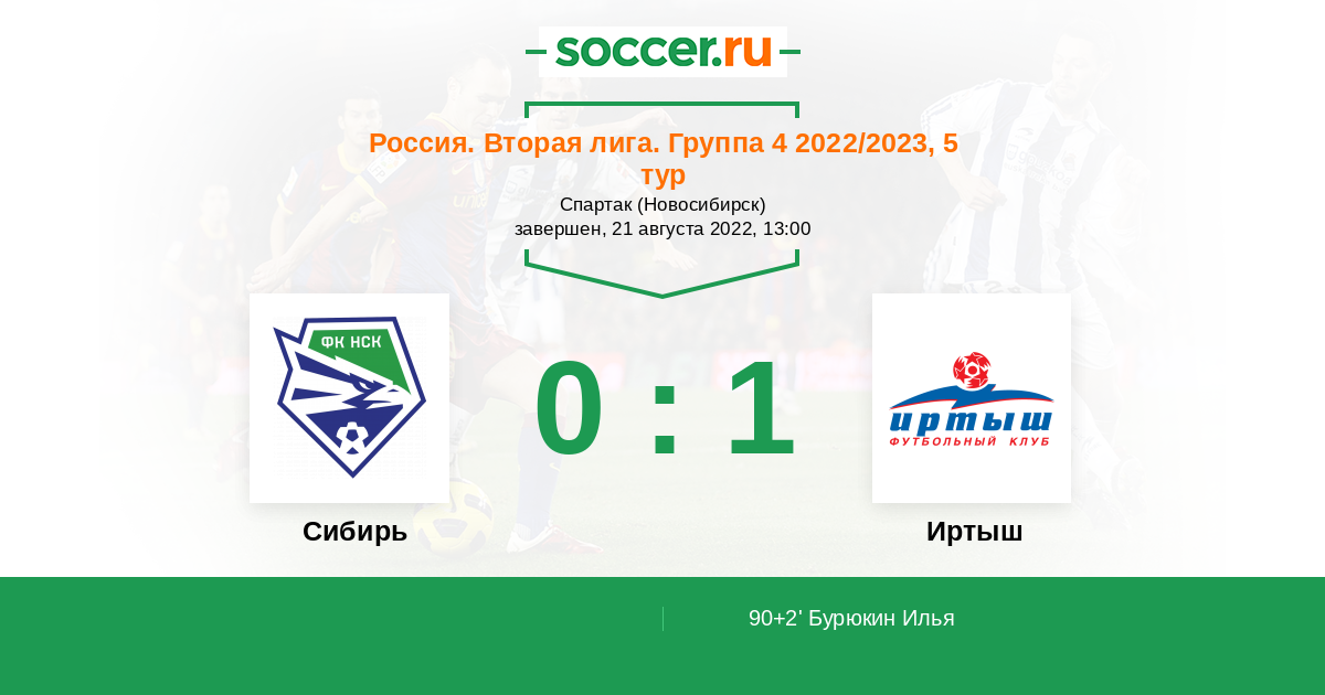 Протокол матча Сибирь против Иртыш