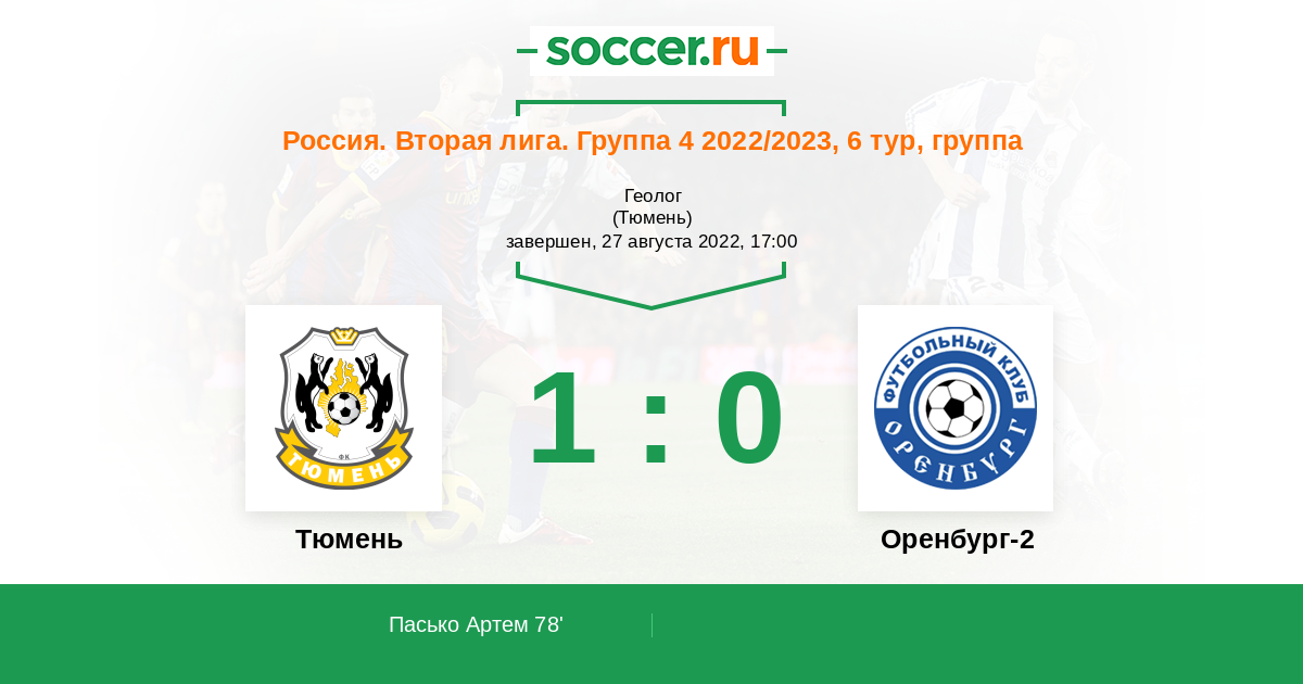 Протокол матча Тюмень против Оренбург-2