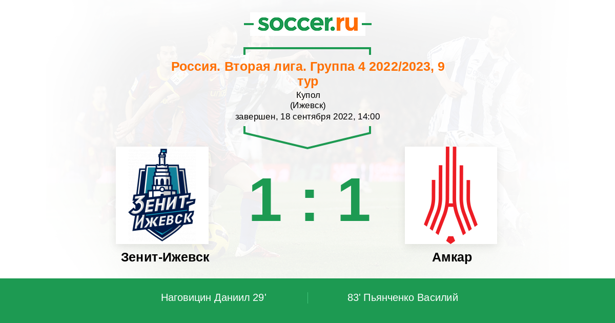 Протокол матча Зенит-Ижевск против Амкар