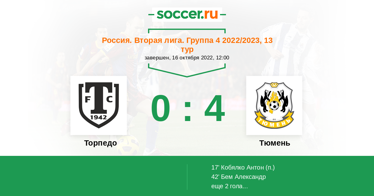 Протокол матча Торпедо против Тюмень