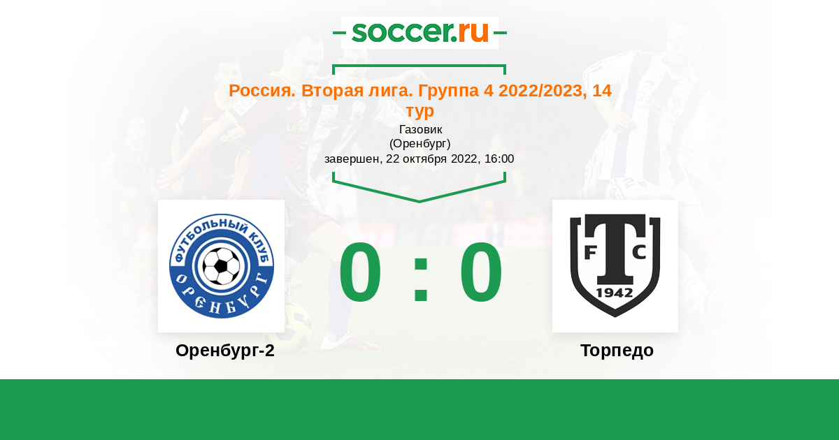 Протокол матча Оренбург-2 против Торпедо