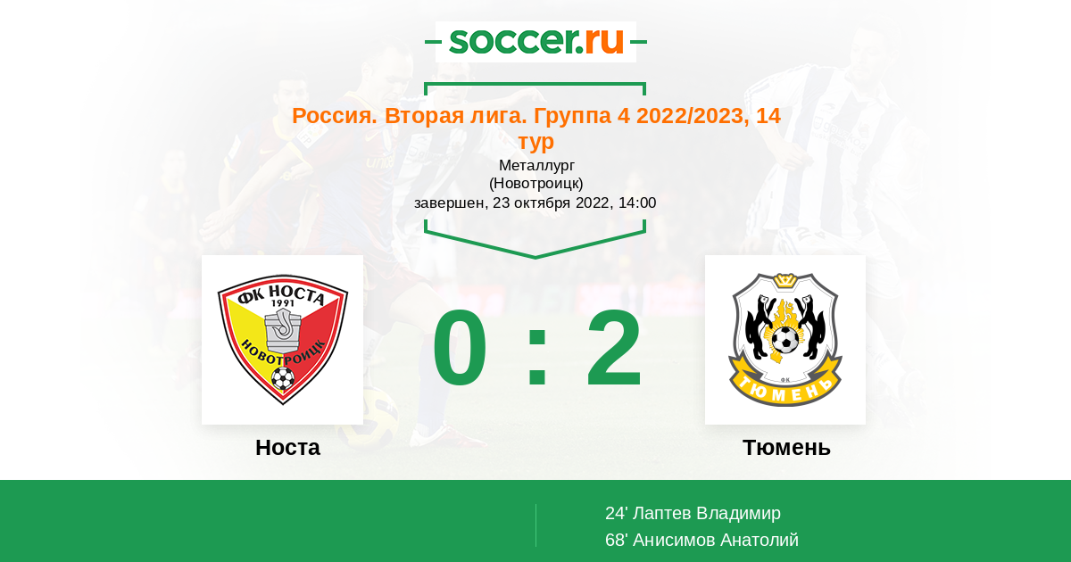 Протокол матча Носта против Тюмень