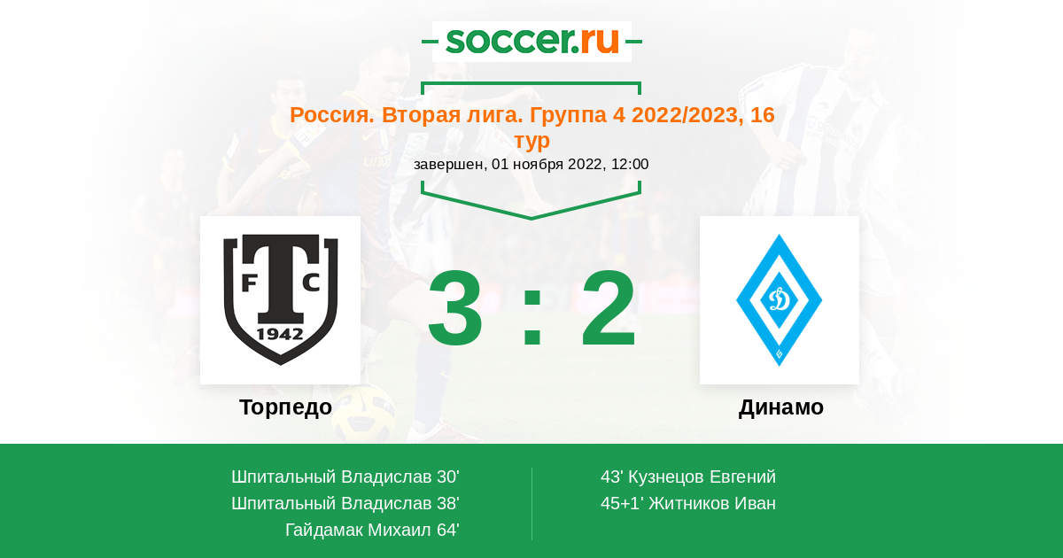 Протокол матча Торпедо против Динамо Барнаул