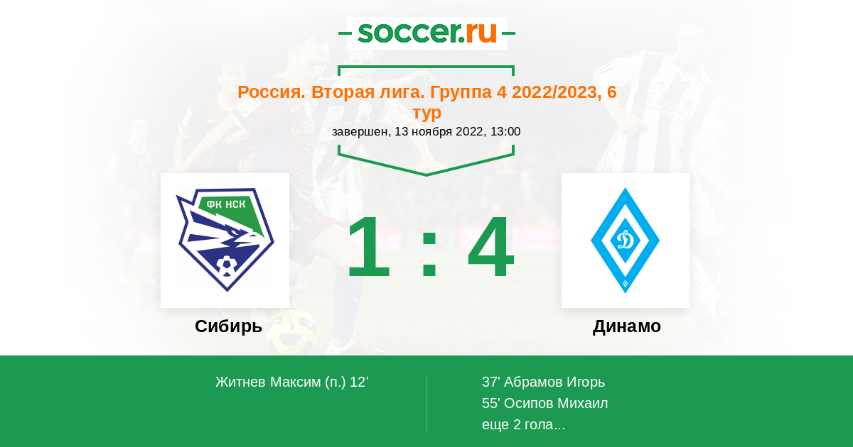 Протокол матча Сибирь против Динамо Барнаул