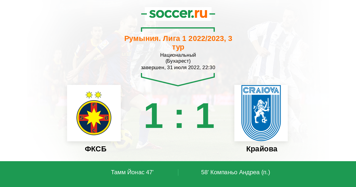 Протокол матча ФКСБ против Крайова